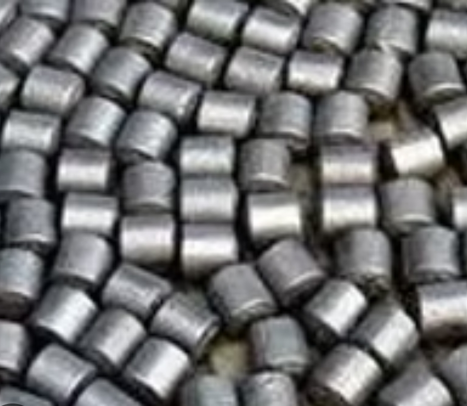 Cylindrical grinding media (cylpebs) for fine grinding in cement and mineral processing.