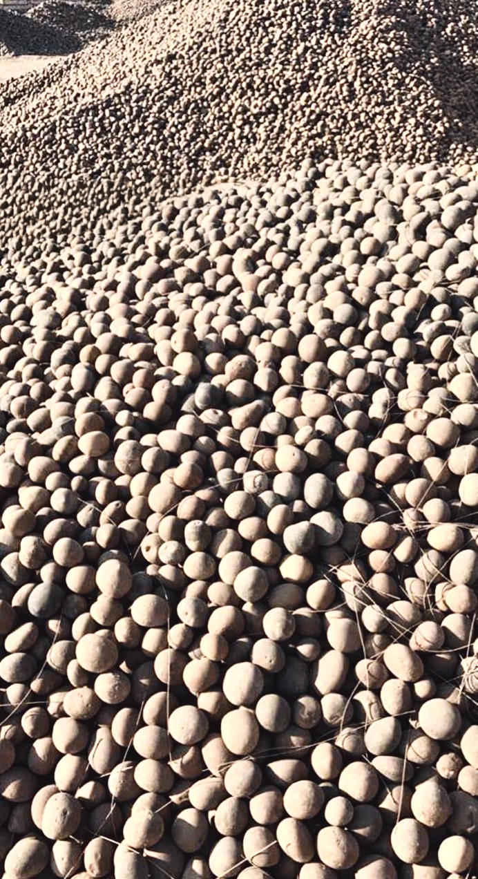Precision cast grinding balls for ball mills used in cement and mining industries.